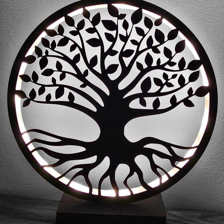 Kombination aus 3D-Druck und Lasertechnik für kreative, beleuchtete oder mehrteilige Produkte (z. B. LED-Ringlampen, Spiegellichter, Holzständer).